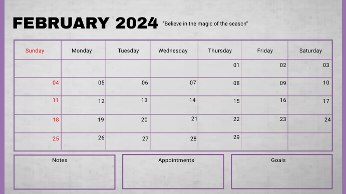FEBRUARY CALENDAR 2024 Template | PosterMyWall